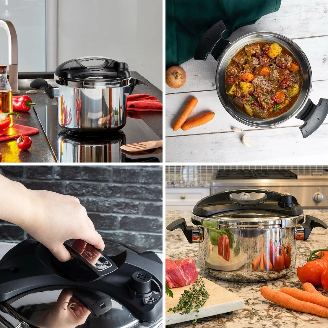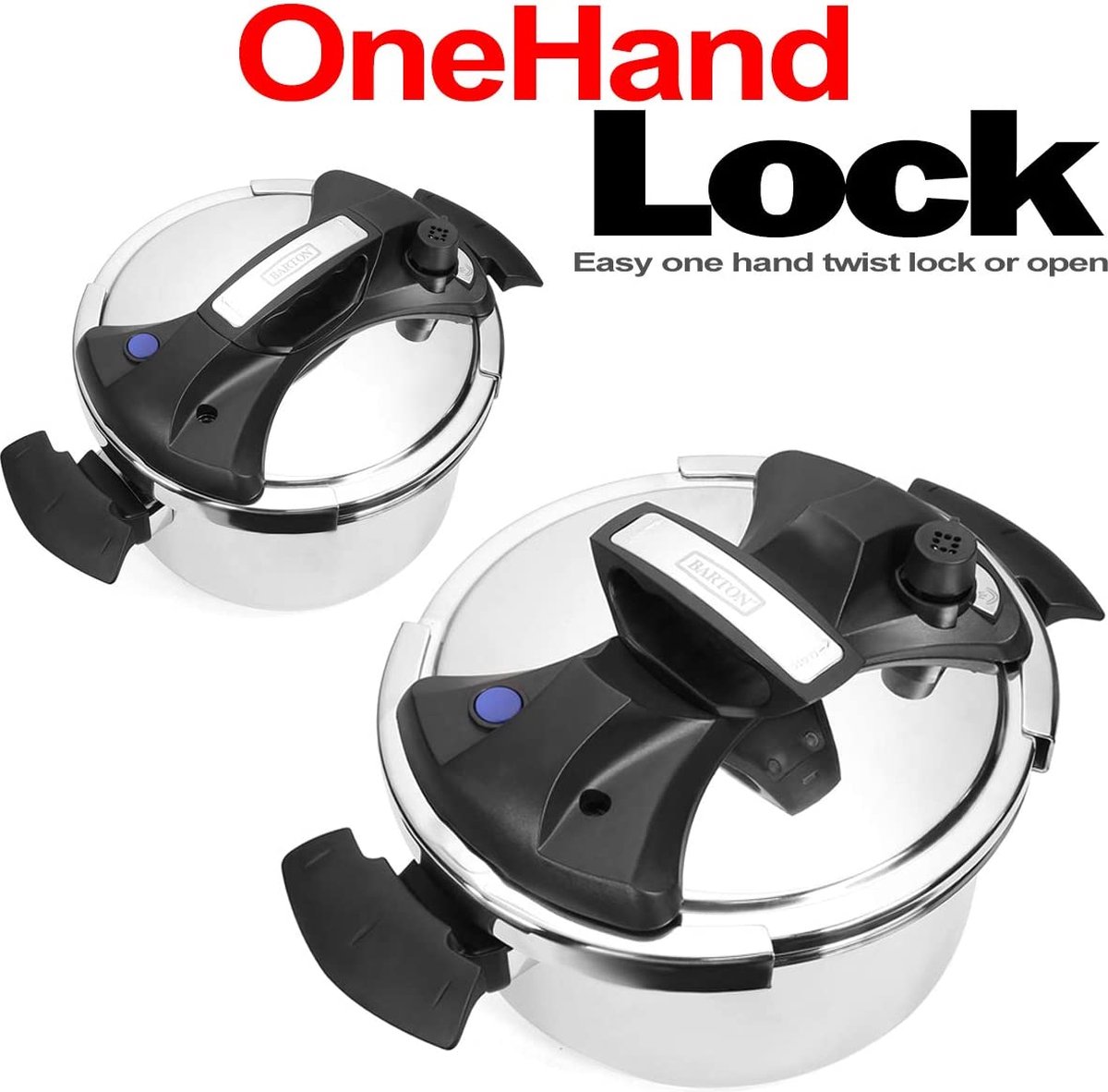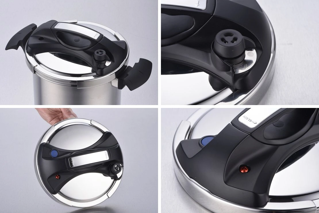 عندما يكون قدر الضغط مغلقًا ، سيكون صمام الأمان الأحمر الموجود على المقبض مغلقًا مرئي. بهذه الطريقة ، من المؤكد أن قدر الضغط سيحتفظ بكل البخار والضغط بالداخل بشكل صحيح.
