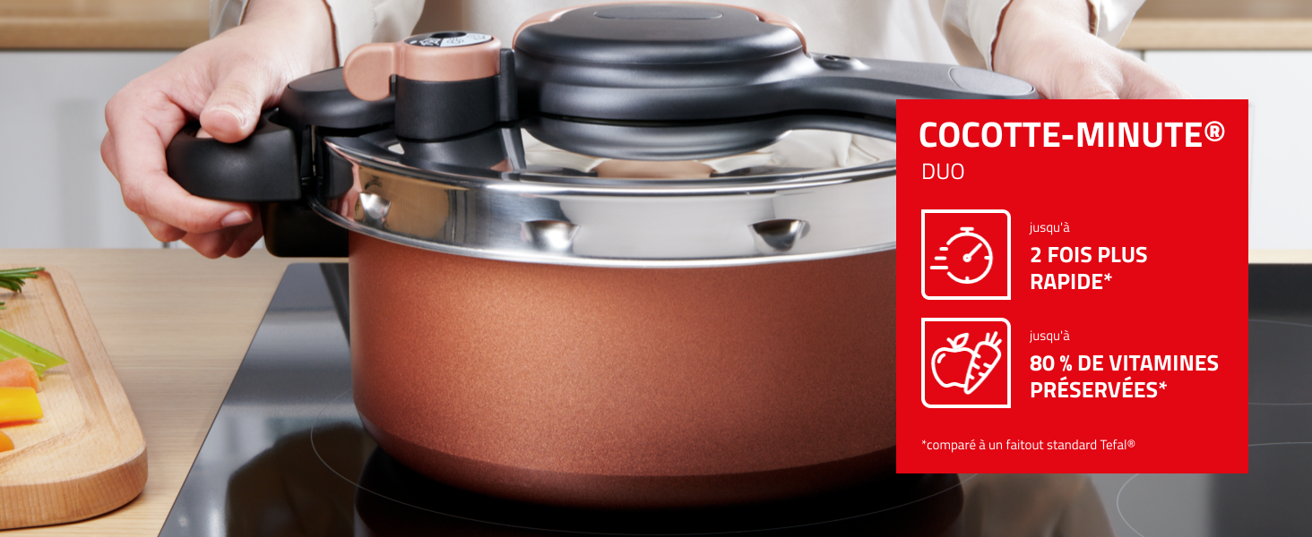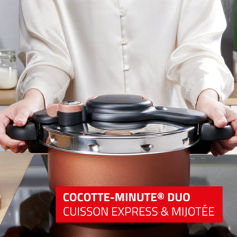 لتحضير مجموعة لا نهاية لها من الوصفات بكل بساطة، تقدم لك الطنجرة الضغط المزدوجة 2 في 1 ClipsoMinut® Duo مجموعة متنوعة من الخيارات وأطباقًا مطبوخة باتقان: يمكنك الاختيار بين الأطباق المطهية بشهوة وطهي البخار السريع. بفضل نظام الفتح الابتكاري SEB® الخاص بها، يمكن فتحها وإغلاقها بسهولة بيد واحدة. وبفضل طلاءها المضاد للالتصاق، لم يكن التنظيف بهذه السهولة من قبل، حتى بعد سنوات من الاستخدام. متوافقة مع جميع أنواع المواقد بما في ذلك المواقد بتقنية الإندكشن، وهي مصحوبة بمئات الوصفات لتطلقوا العنان لإبداعكم الطهي لكل العائلة.